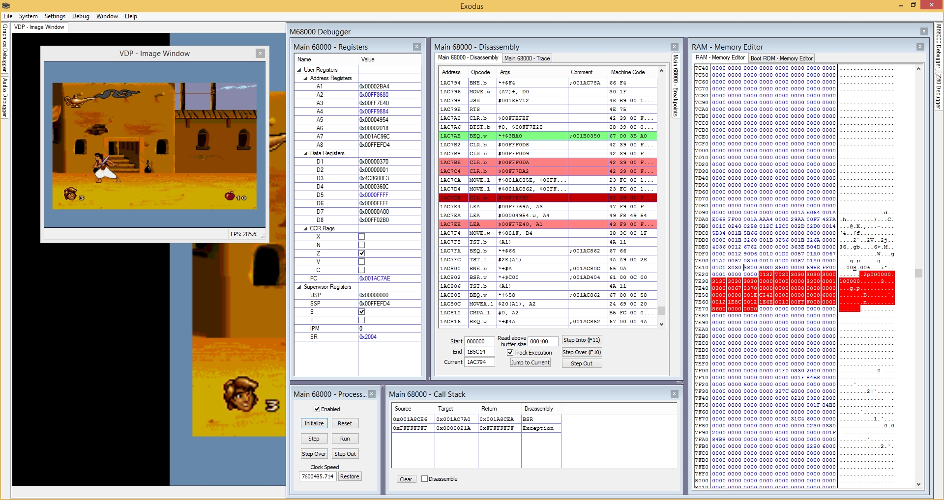 Showcasing some of the CPU debugging features available for the Mega Drive
